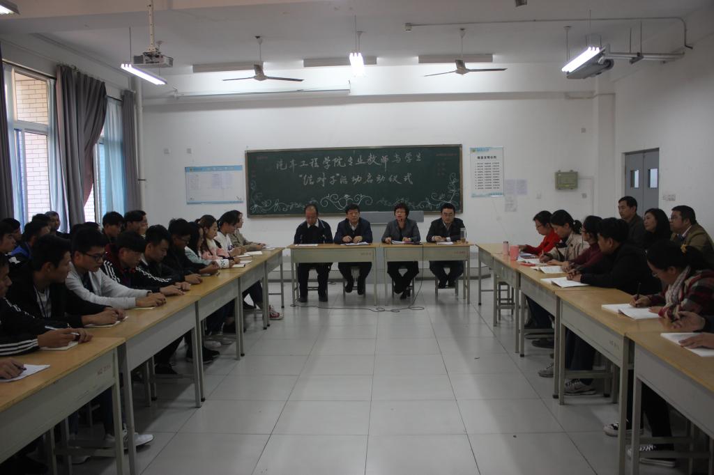 活动中,学院领导班子成员分别发言,首先介绍了本次活动的目的,指出由于学生专业知识的欠缺,在校期间参与专业知识活动较少,导致了学生对专业认知短浅,就业对口率不高;学院开展专业教师与学生“结对子”活动,就是为了弥补辅导员、班主任在专业认知、校企合作方面的欠缺,充分发挥专业教师的专业特长,以提高学生管理的针对性。紧接着,宣读了结对详细分配表,学生以宿舍为单位与专业任课教师一一结对。