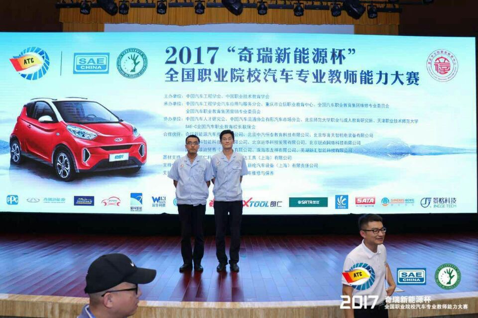 由中国汽车工程学会、中国职业技术教育学会主办的“2017‘奇瑞新能源杯’全国职业院校汽车专业教师能力大赛”,于2017年9月21日在重庆市立信职业教育中心落下帷幕,代表我院参赛的马福胜和王登强两位教师在本次大赛的高职组教师汽车检修赛项中荣获团体二等奖。
