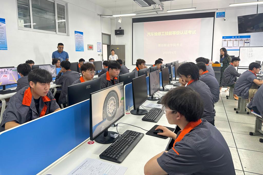本次认定考核工作严格按照题库建设要求和国家职业标准中高级工要求组织理论和技能考核。理论考试采用机考形式进行,主要考察学生对汽车维修相关理论的掌握程度;实操考试采用模拟操作形式进行,通过虚拟仿真操作考察学生对汽车维修的规范意识及综合技能。