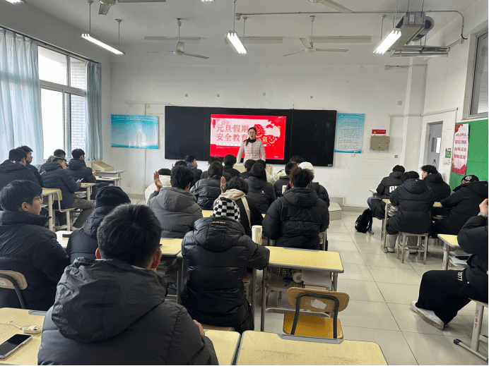 班会围绕节假日期间常见的安全风险展开,内容涵盖交通安全、用电防火安全、防诈骗、防盗抢、饮食卫生以及网络安全等多个方面。各班级辅导员通过案例剖析、视频警示、制度解读、互动问答等形式,向同学们详细讲解了冬季出行注意事项、宿舍电器使用规范、防范电信网络诈骗技巧、聚会聚餐安全须知等实用知识,并针对元旦期间可能出现的返乡客流高峰、冬季恶劣天气、网络购物陷阱等问题进行了重点提醒,引导学生牢固树立“安全第一,预防为主”的思想。