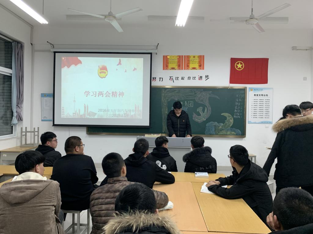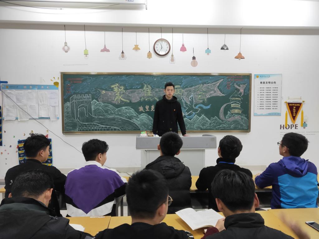 为提高学生政治素养,增强“关注时代动向,把握时代脉搏”的大局观,培养自身的使命感与责任心,yl8858永利集团于3月14日下午在惠泽2号楼B区各班级举办“学习两会精神”主题团课。