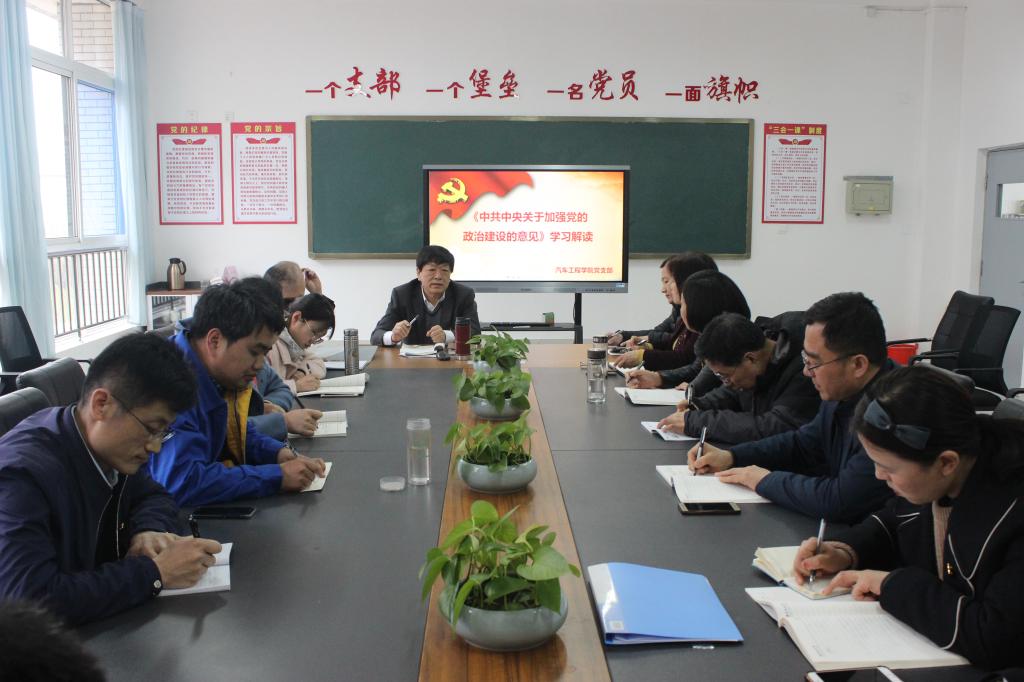 4月11日下午 ,yl8858永利集团党支部召开党员大会,组织学习《中共中央关于加强党的政治建设的意见》,进一步深入学习贯彻习近平总书记关于加强党的政治建设重要论述。会议由汽车工学院党支部书记王会礼主持。