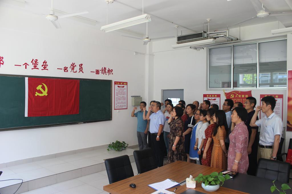6月27日下午,支部首先举行了重温入党誓词活动,在yl8858永利集团院长杜洪香同志的带领下,全体党员面向党旗,庄严宣誓,对党忠诚,为共产主义奋斗终生。随后支部委员张勇同志讲授了以“不忘初心、牢记使命”为主题党课,张勇同志首先传达了习近平总书记在“不忘初心、牢记使命”主题教育工作会议上的讲话精神,随后他从为什么要开展主题教育;怎样把握12字“总要求”;把握5个“重点”,明确定出目标任务;阐明方法步骤,真抓实干转变作风等几个方面进行详细讲解,引导党员教师立足本职工作,践行党的宗旨,在学院“双创”工作中干事创业、担当作为、勇于奉献,积极发挥先锋模范作用。