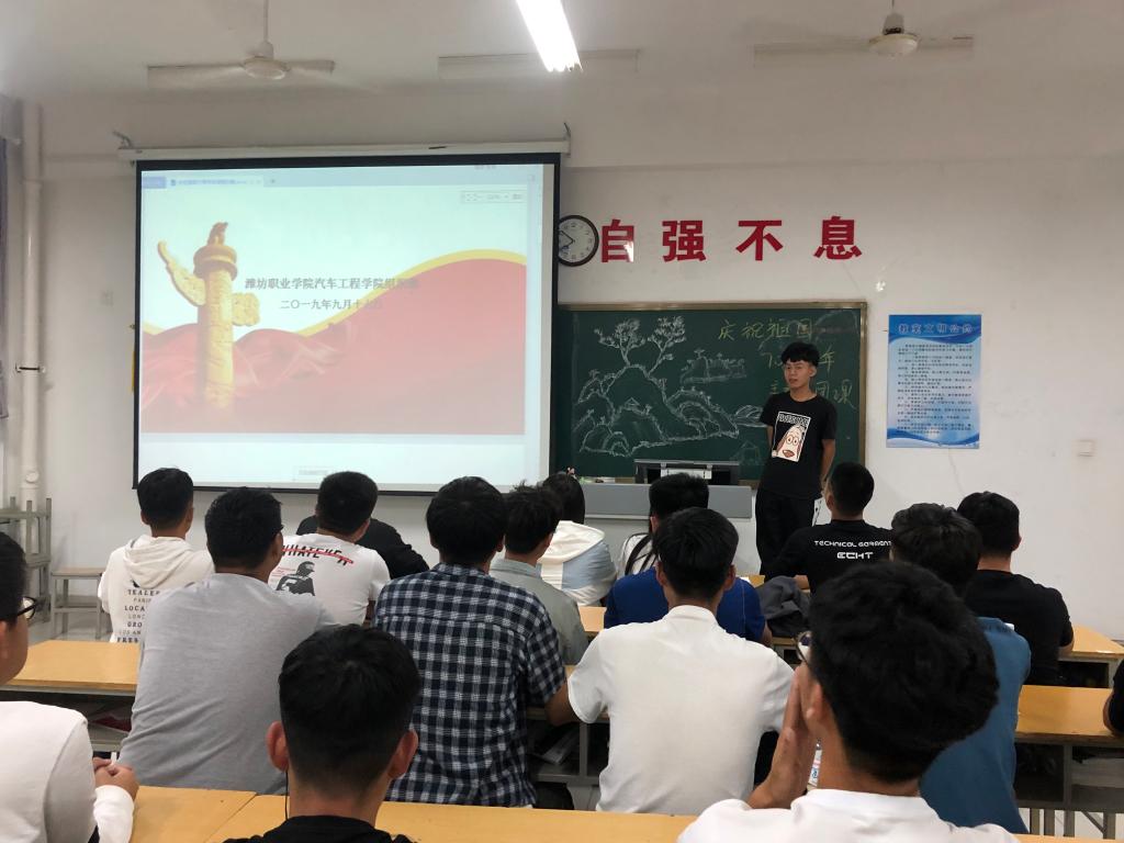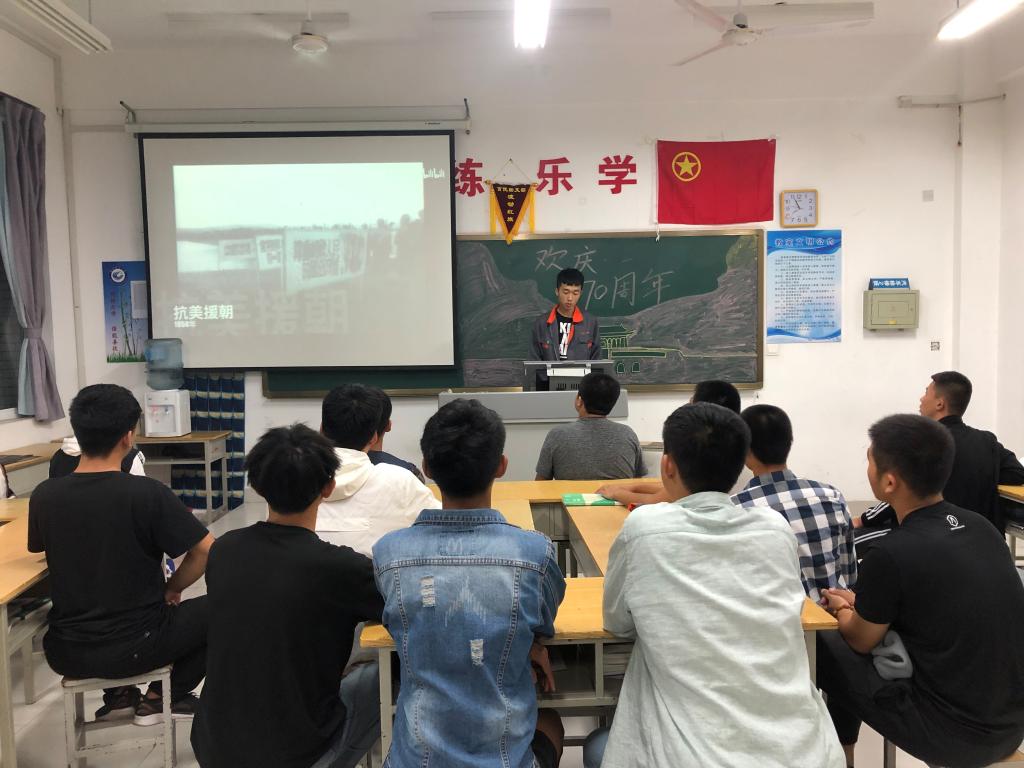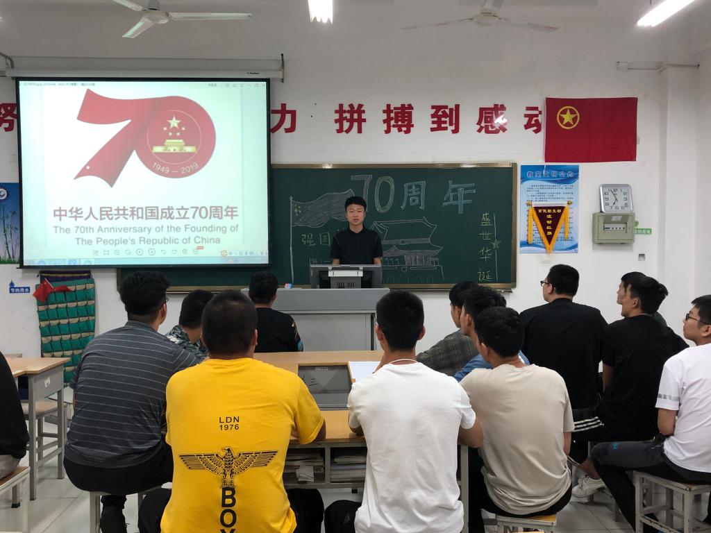 为隆重纪念中华人民共和国成立70周年,讴歌伟大祖国所取得的辉煌成就,按照学院《关于开展庆祝中华人民共和国成立70周年活动的通知》要求,9月19日晚自习,yl8858永利集团各班级在惠泽2号楼B区教室开展了庆祝建国70周年主题团课。