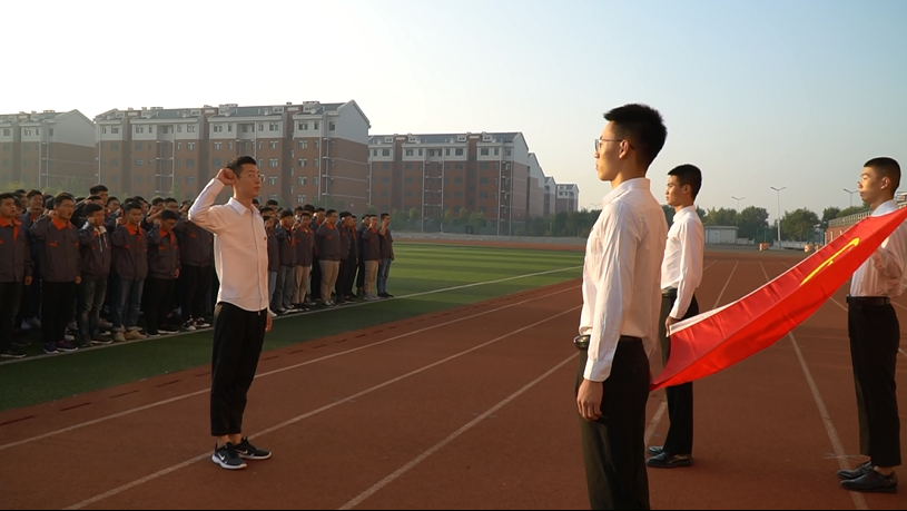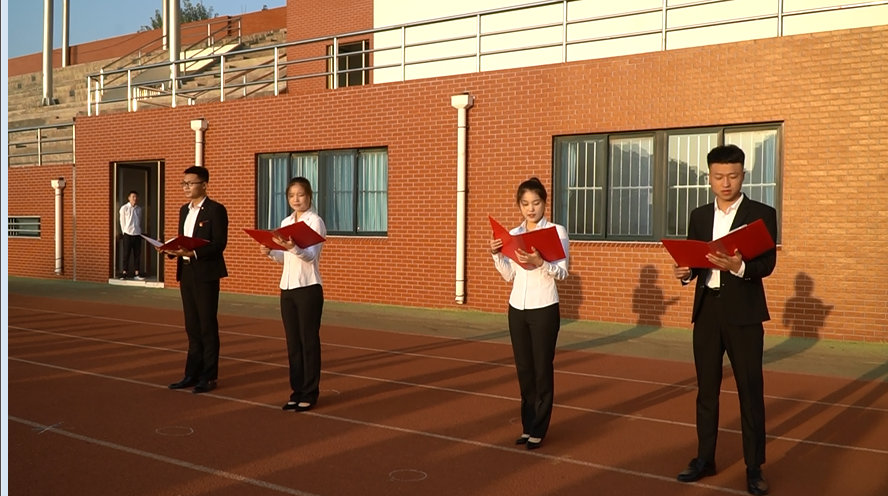 早晨6点30分,活动正式开始。国旗护卫队迈着铿锵有力的步伐,护送国旗走到升旗台前,伴随着雄壮的国歌声,鲜艳的五星红旗冉冉升起,全体人员行注目礼,齐唱国歌。升旗仪式结束后,团员代表孙恒坤同学以“我与祖国共奋进”为主题,围绕学习贯彻习近平总书记在纪念五四运动100周年大会上的重要讲话精神,结合自身的学习、生活体会做了国旗下的演讲,展现了青少年学生与祖国同呼吸、与时代共奋进的爱国主义情怀和昂扬的精神面貌。随后,2018级汽车营销与服务班高华等四名同学在国旗下进行了诗朗诵《我的祖国》,抒发对祖国的热爱之情,歌颂祖国翻天覆地的历史巨变。最后,全体学生重温了入团誓词,通过重温誓词使青年学生更加坚定了永远跟党走,与祖国共奋进的决心和信念。